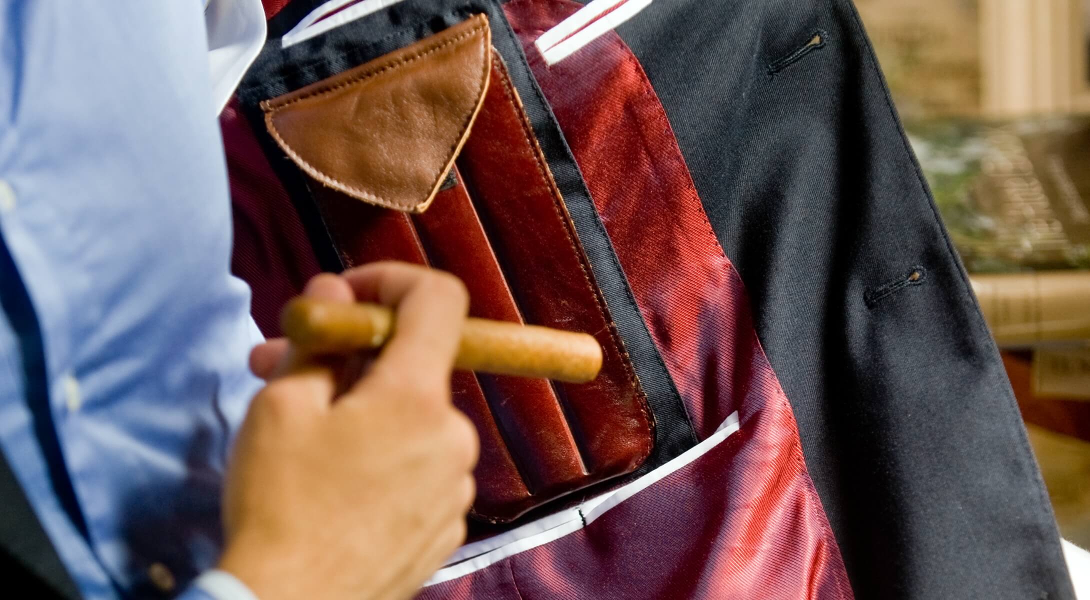 Keeping in mind that a cigar aficionado should always carry a minimum of three cigars on his person, Max’s contribution to cigar culture is a cigar-tailored jacket system that can be placed in any suit, blazer, sports coat, tuxedo, or even a hunting jacket.