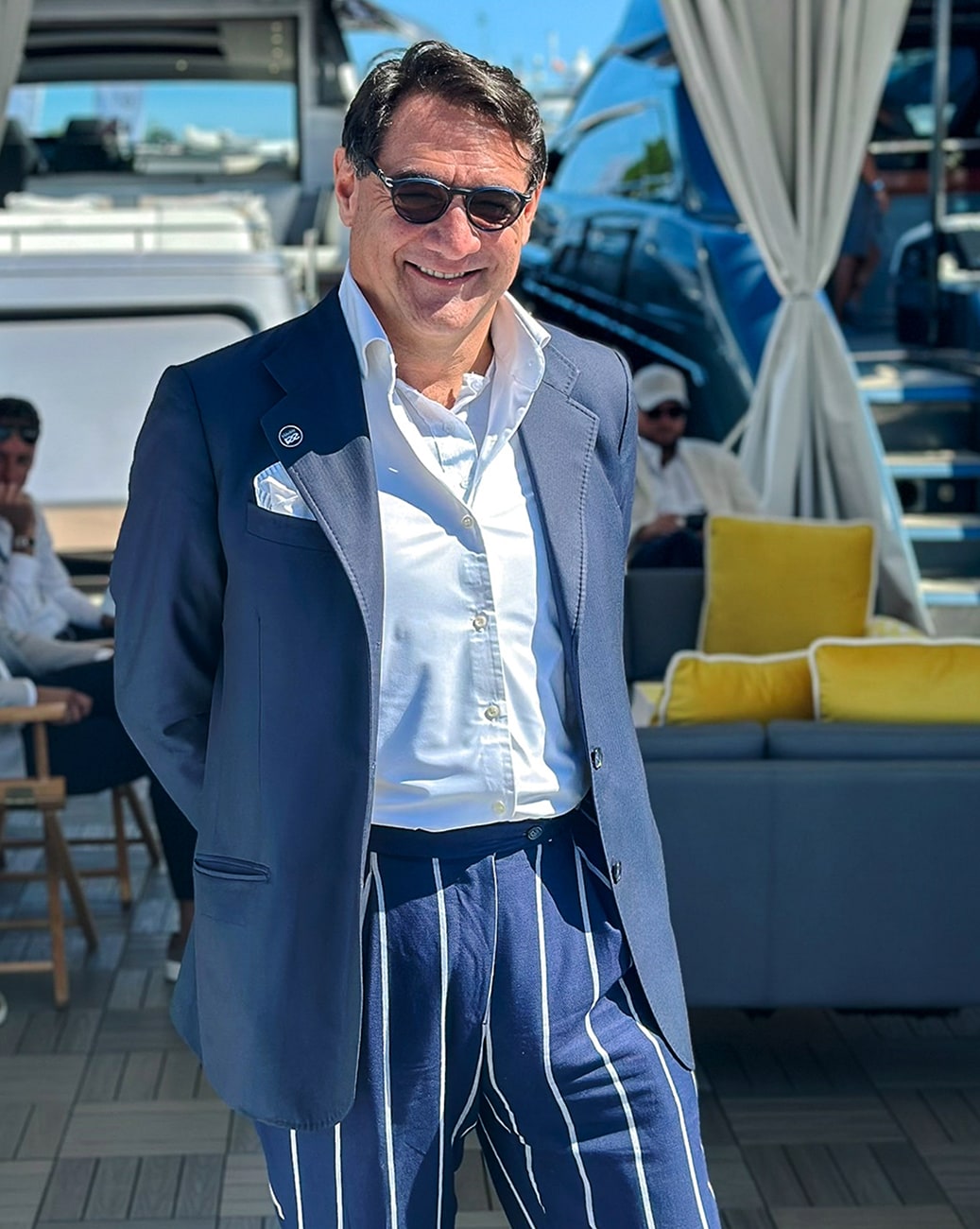 Our garments are made from the world’s finest fabrics, paired with impeccable cuts and customized details that reflect each yacht owner’s personal style and his love for the sea. Our mission is to combine the timeless art of Italian tailoring with the unique demands of life on the water.